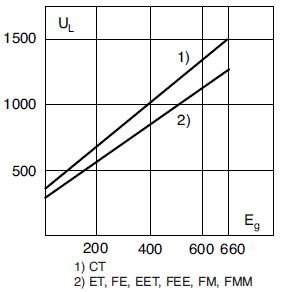 This curve gives the peak arc voltage, UL, which may appear across the fuse during its operation as a function of the applied working voltage, Eg, (rms) at a power factor of 15%.