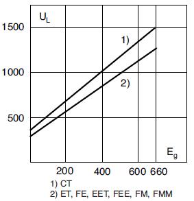This curve gives the peak arc voltage, UL, which may appear across the fuse during its operation as a function of the applied working voltage, Eg, (rms) at a power factor of 15%.