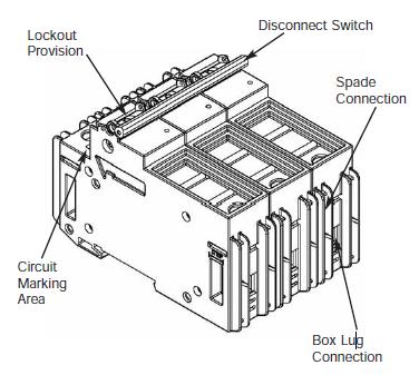 • Box Lug and Spade Terminal suitable for line, load or accessory connection.