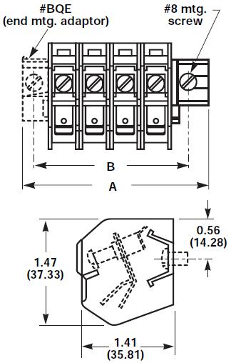 Mounting Options: Base mount, stackable. End Piece (Cat. No. BQE) is required for mounting. Mounting screws recommended every 8 circuits.
