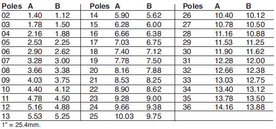 Center Spacing: 0.375” or 3/8” (9.52mm)