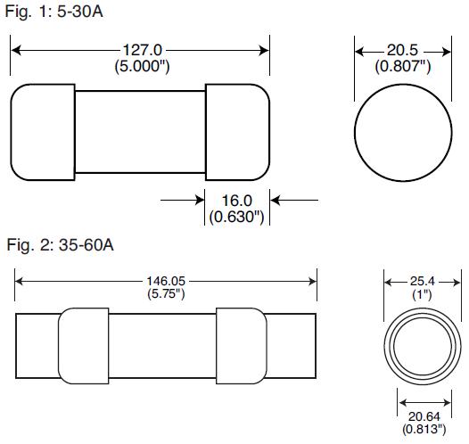 | Size | Rated Current RMS-Amps | I2t (A2S) | Watts Loss | Part Number | Carton Qty. | Carton Weight (kg) | Figure Number | |