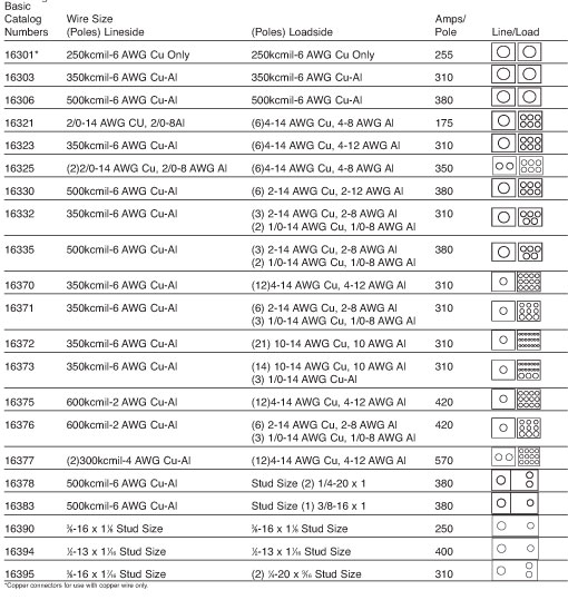 Amps: See catalog Numbers table.